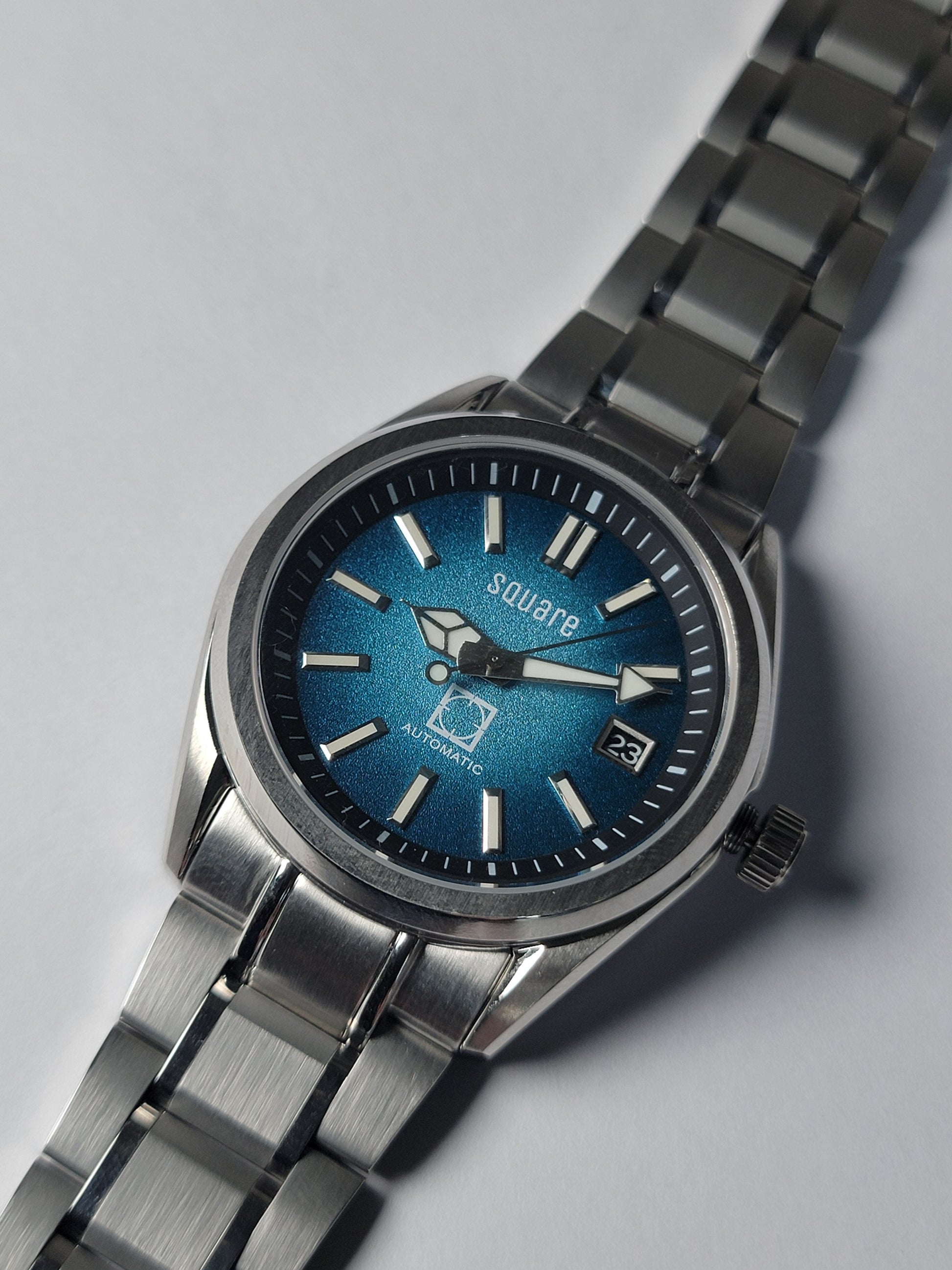 Understated elegance, everyday toughness. The Arclume from Square Watch Co. is crafted to move effortlessly from boardroom to weekend with its versatile, classic design. Featuring a 40mm brushed stainless steel case and bracelet accented with subtle polished highlights, the Arclume strikes the perfect balance between refinement and resilience. Powered by the trusted NH35 automatic movement and protected by a scratch-resistant sapphire crystal, this timepiece is built to last. A dual-button locking clasp ensures a secure and comfortable fit, delivering style and confidence for any occasion.