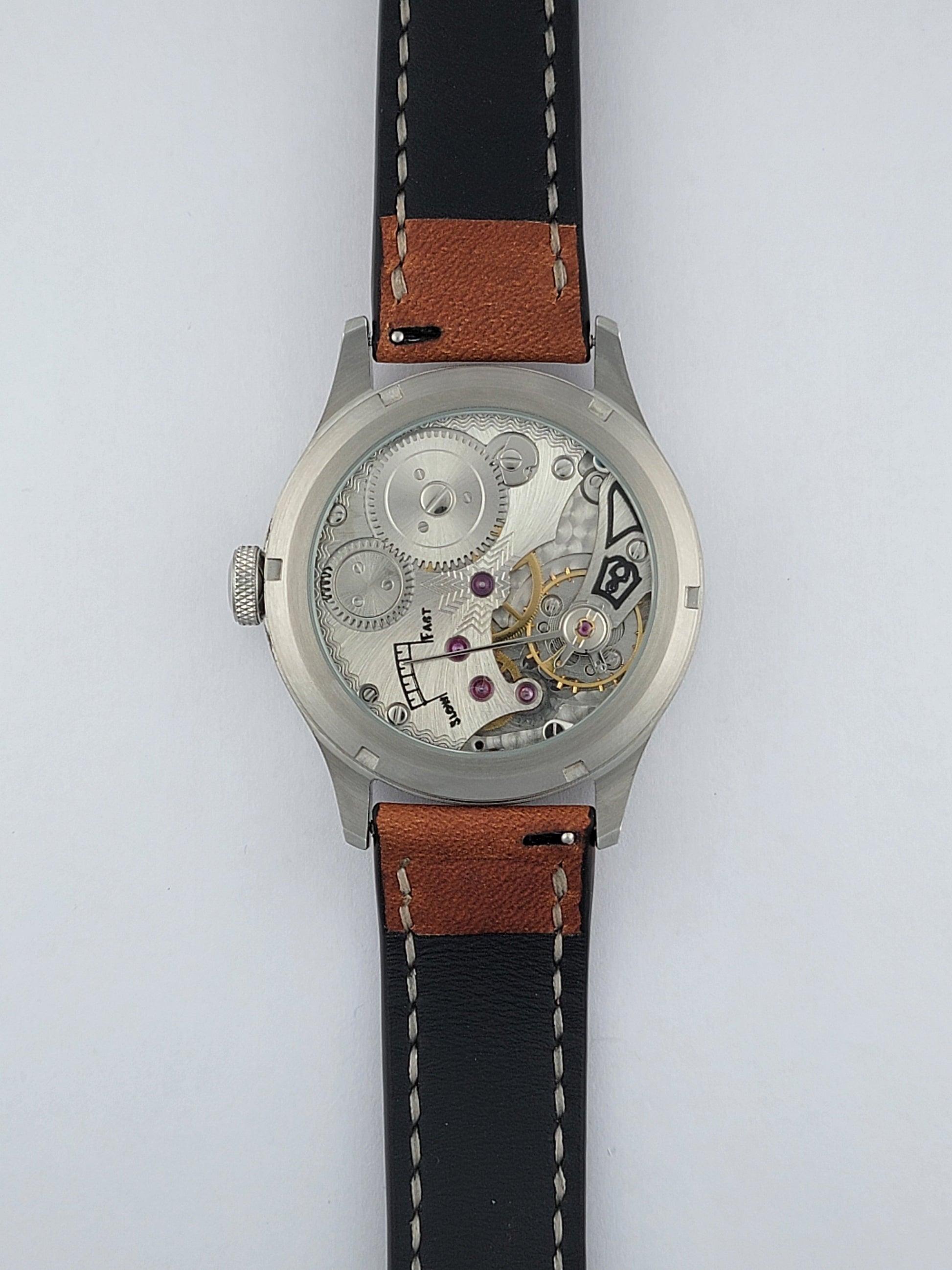 Rugged, mechanical, and proudly minimal — the Rawsteel 44 from Square Watch Co. captures the essence of pure mechanical watchmaking. Featuring a fully brushed 44mm stainless steel case and a raw-finished dial with etched indices, the Rawsteel 44 puts craftsmanship and functionality first. Powered by the reliable ST3621 hand-wound mechanical movement, it offers a direct, tactile connection between wearer and machine, visible through a sapphire exhibition caseback. Completed with a handmade Canadian leather strap crafted from premium Italian leather, the Rawsteel 44 is built for those who appreciate honest materials and traditional mechanics — no frills, no shortcuts.