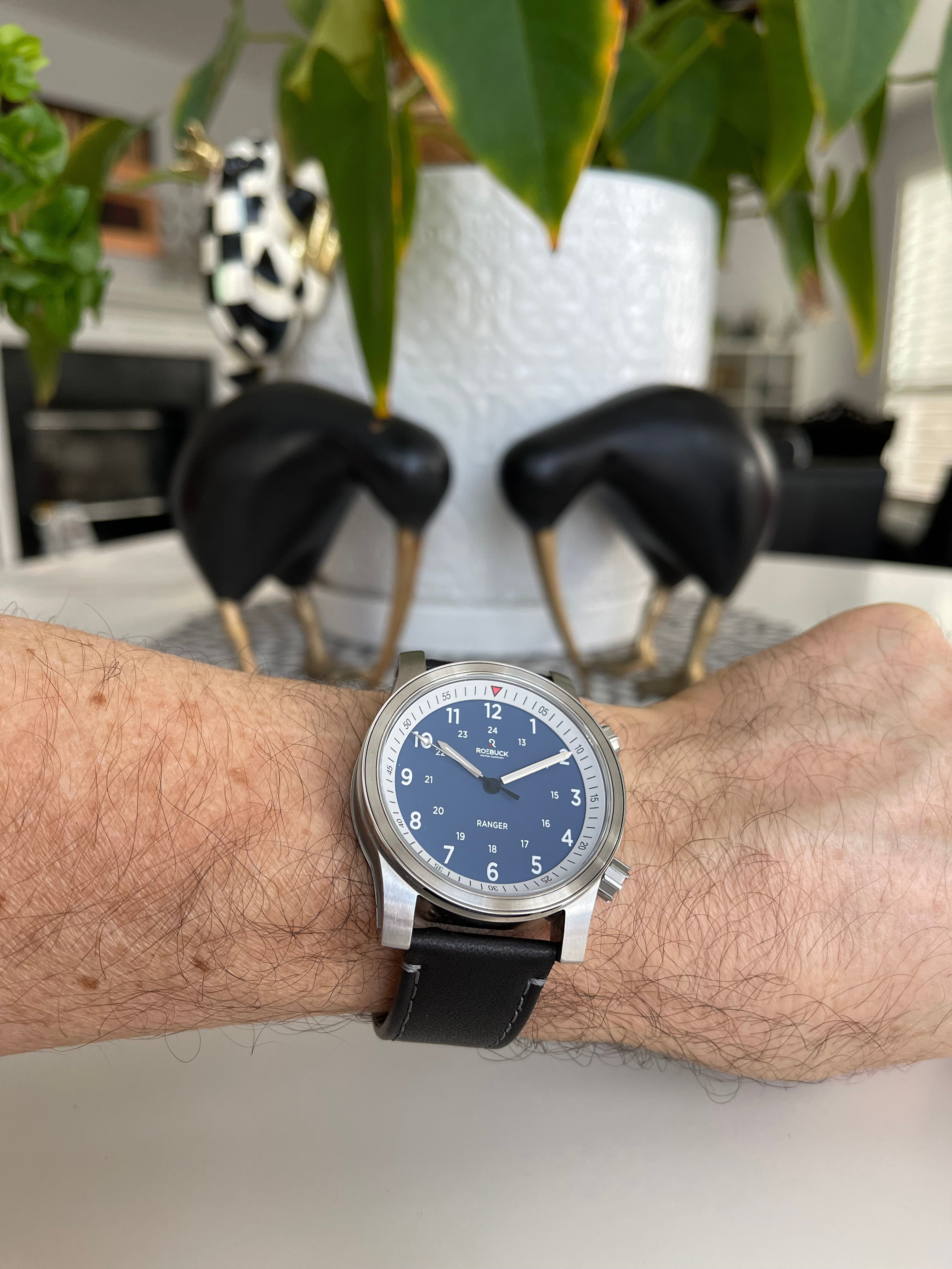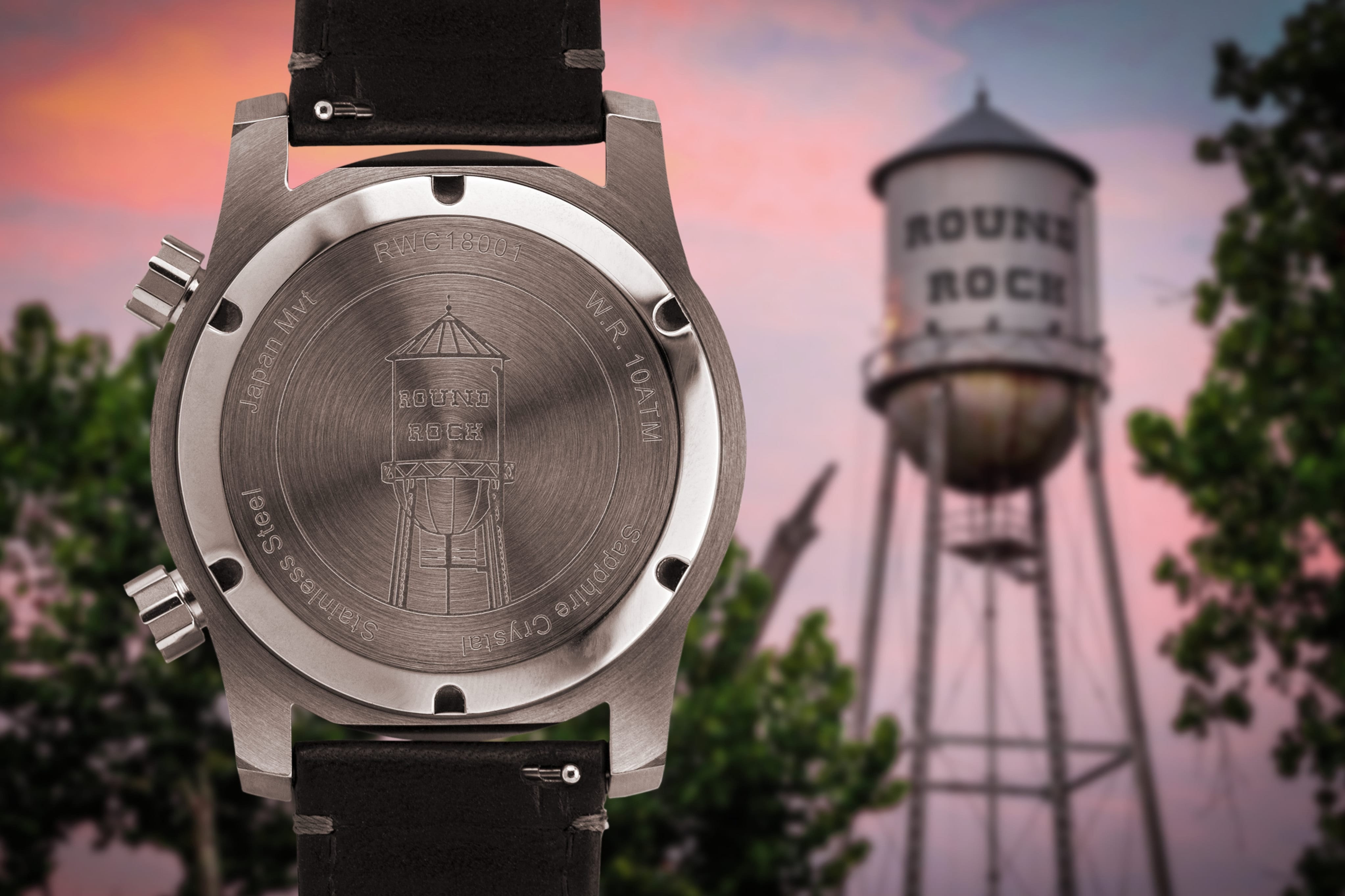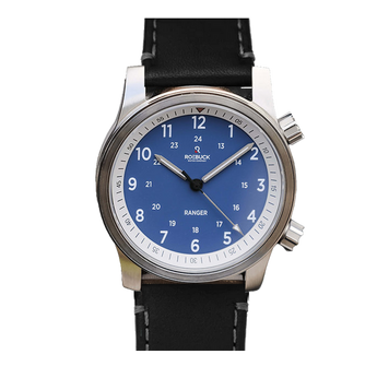 The Ranger creates the best of both worlds with a fusion of sport/dress and field watch. The case features mixed finishes and detailing similar to dress watch cases, but with a recognizable field watch dial layout. It also features an inner rotating timing bezel for added functionality and displays a nod to Round Rock, Texas on the case back. Dress it down with the canvas camouflage strap, or dress it up with the black leather strap. Either way, the Ranger was made to fit any lifestyle.