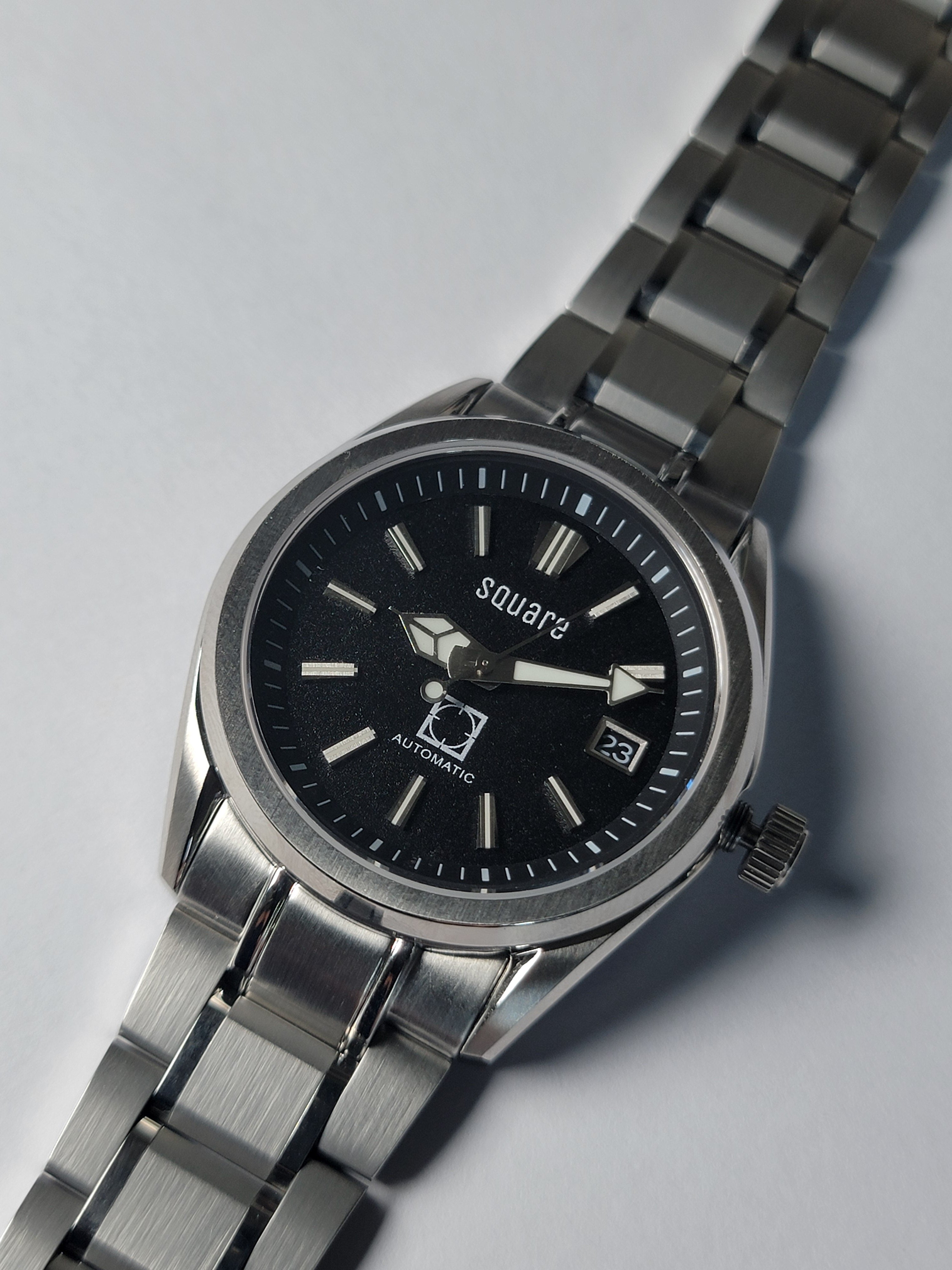 Understated elegance, everyday toughness. The Arclume from Square Watch Co. is crafted to move effortlessly from boardroom to weekend with its versatile, classic design. Featuring a 40mm brushed stainless steel case and bracelet accented with subtle polished highlights, the Arclume strikes the perfect balance between refinement and resilience. Powered by the trusted NH35 automatic movement and protected by a scratch-resistant sapphire crystal, this timepiece is built to last. A dual-button locking clasp ensures a secure and comfortable fit, delivering style and confidence for any occasion.
