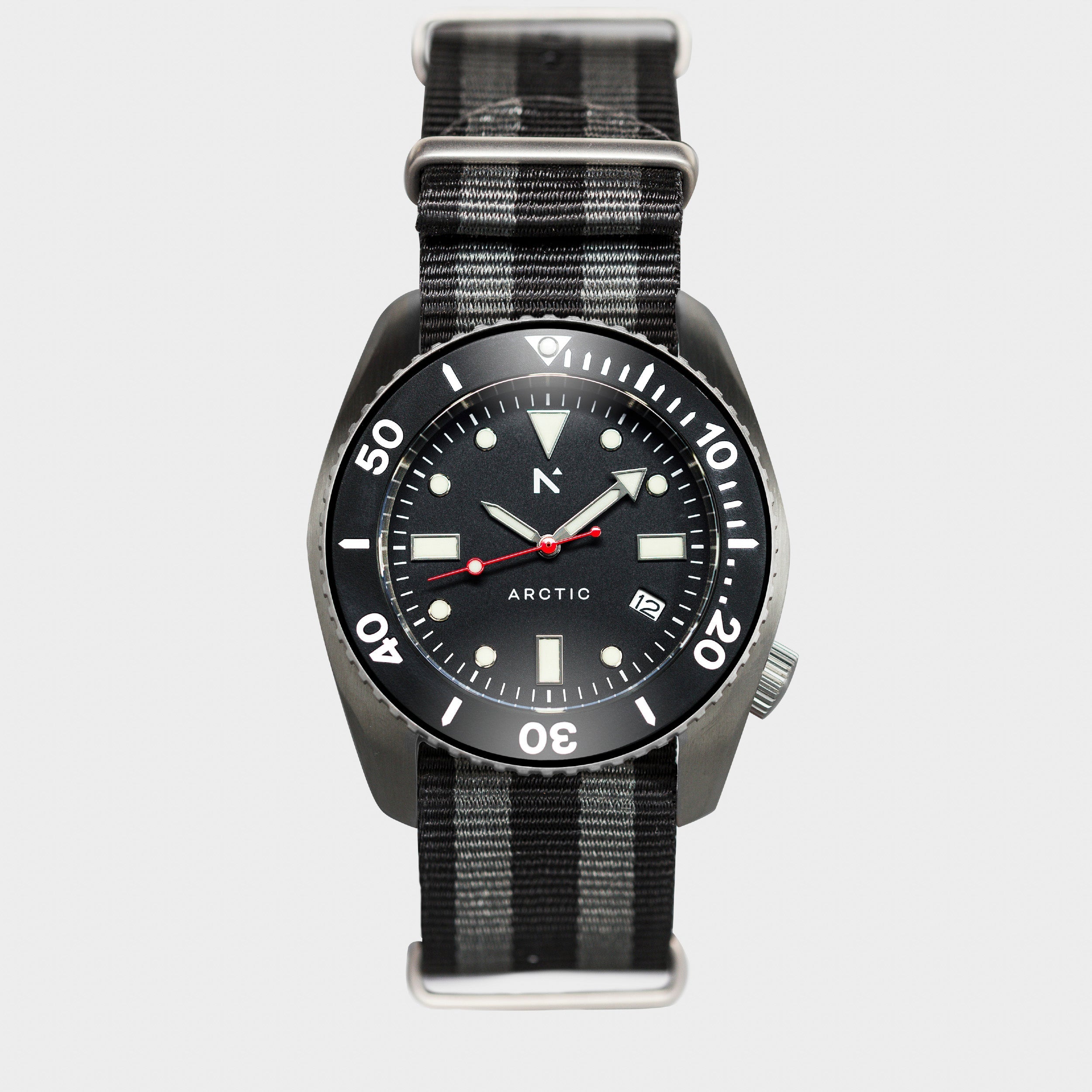 Inspired by the Northern hemisphere’s cold saltwater – meet the Arctic, a professional diver's watch with a mechanical movement, engineered in Germany and accompanied by a fast-drying nylon strap.