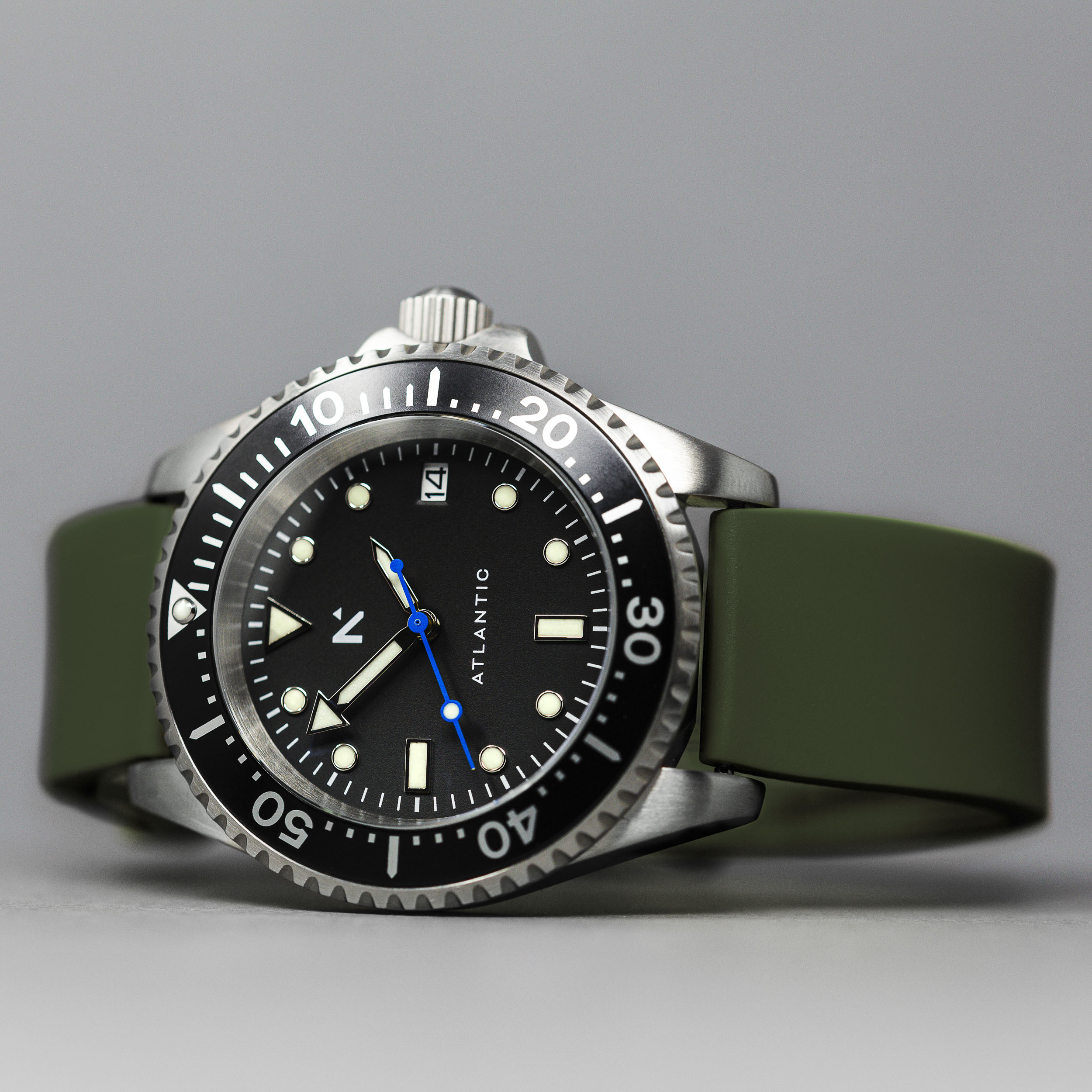 A durable, versatile tool watch inspired by the Northern hemisphere’s cold saltwater – meet the Atlantic, our debut timepiece… a mechanical diver's watch engineered in Germany and accompanied by a waterproof strap made in Italy from sustainably sourced rubber.