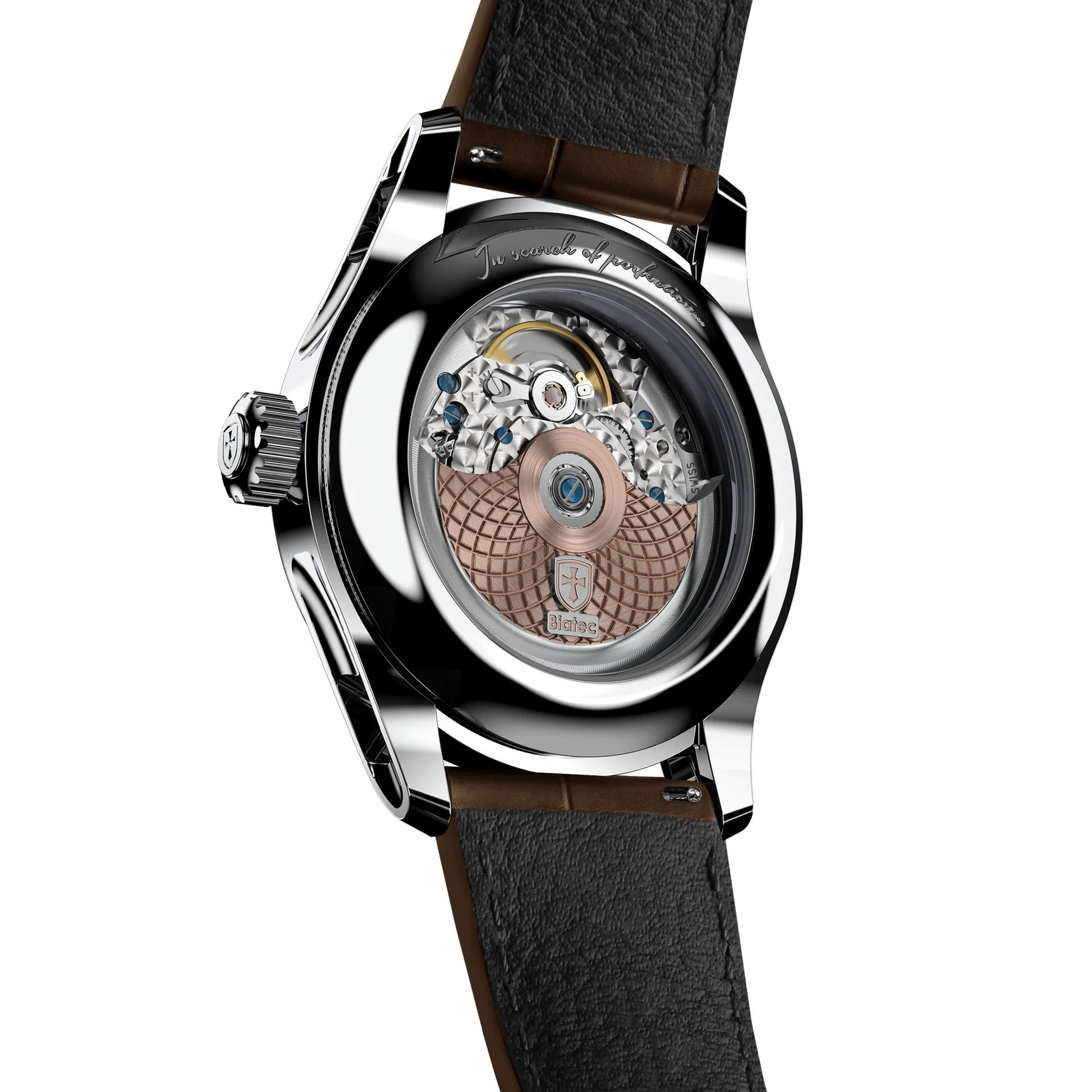 Polished Biatec logo at 12 o'clock with rosegold plating