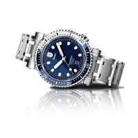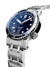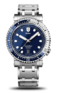 The Leviathan 02 belongs to the diver style Biatec Leviathan Collection and features a 316L stainless steel solid case with revolutionary NanTec technology, an elegant blue sunburst dial with applied silver indexes, nicely polished silver hands filled with the finest Super-LumiNova® and a robust steel bracelet with butterfly clasp.