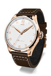 • Dark brown calf leather with white stitching comes as standard. Possibility to choose another strap.