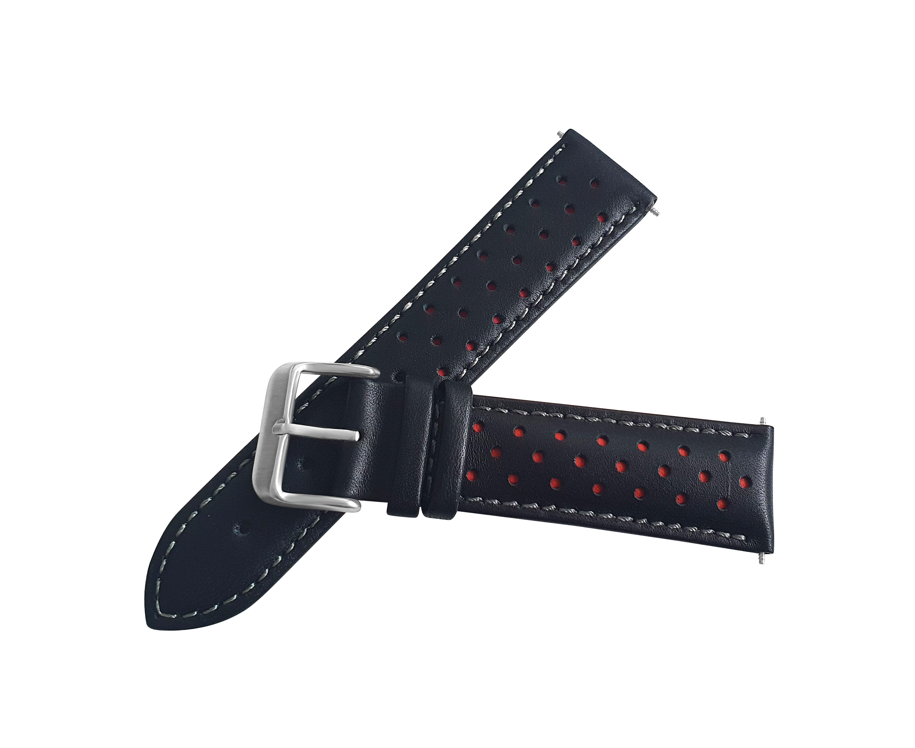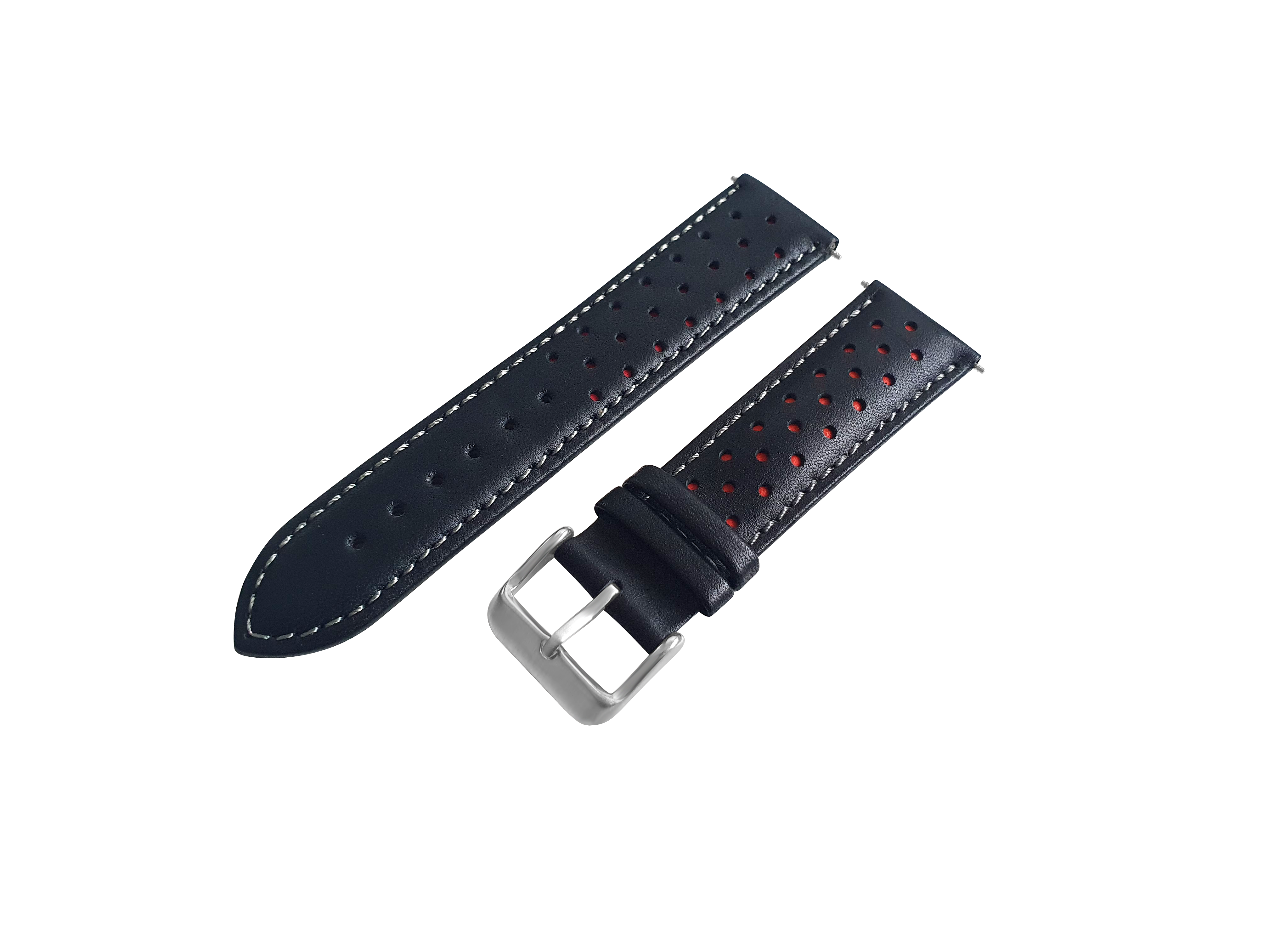 Black And Red Leather Rally Watch Strap, Silver Buckle