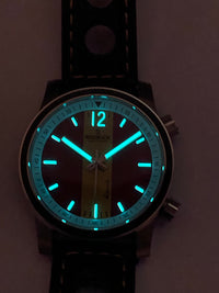 Super-Luminova BG-W9 lume to hands and markers, a superior lume that is both bright and long-lasting.
