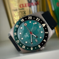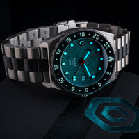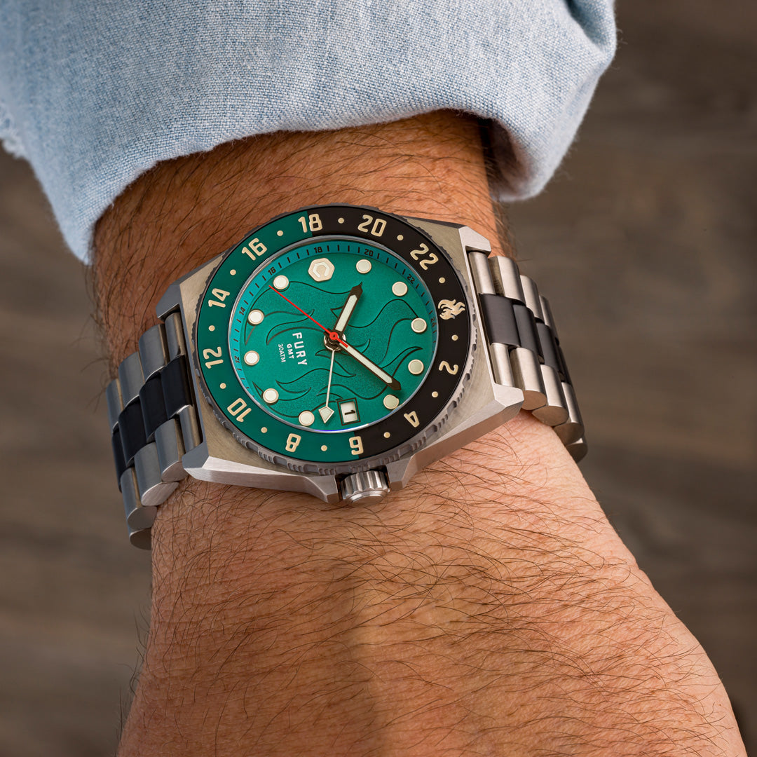 Arriving with two bands . . . a quick release two-tone titanium bracelet and a Barton® Elite silicon strap. Stylish, colorful, and ready to travel in multiple timezones. Let your passion burn!