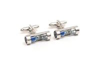An Hourglass was one of the early devices used to measure the passage of time. These cuff links not only appear stylish, but they are also functional. Like the original hourglass, the J.Ciro Hourglass cuff links each comprise of two glass bulbs connected vertically by a narrow neck that allows a regulated trickle of bright blue sand.
