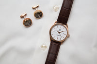 The Legacy Rose White Dress Watch was designed for every big moment in one's life that adds to one's legacy; the job interview, the first date, the evening out, the wedding day & more. It's a classic, clean look that can be somewhat custom-built for each customer to be the perfect fit. Choose from a Swiss Ronda Quartz (Battery-Powered) or Japanese Miyota 8315 Automatic (No Battery, Powered by Movement and Energy) Movement, fitted Metal Bracelets or one of two high-quality Leather Straps. Be sure to review the full specs below along with the specs of the movement choices.