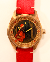 our in house design team. The design draws from the detailed, atmospheric style of Victorian-era fairytale books, bringing the classic tale to life on the dial.