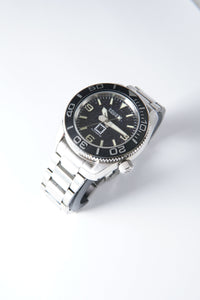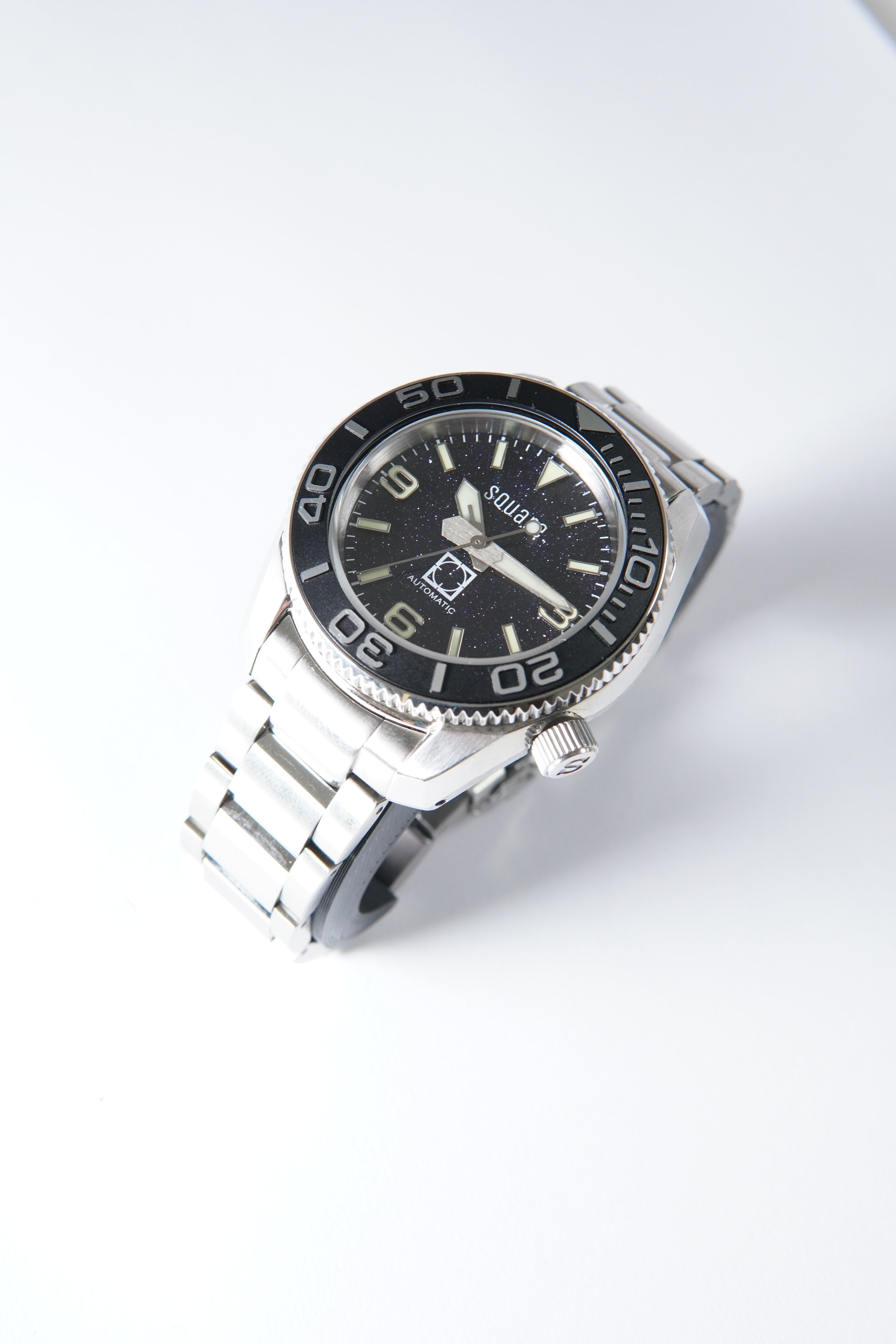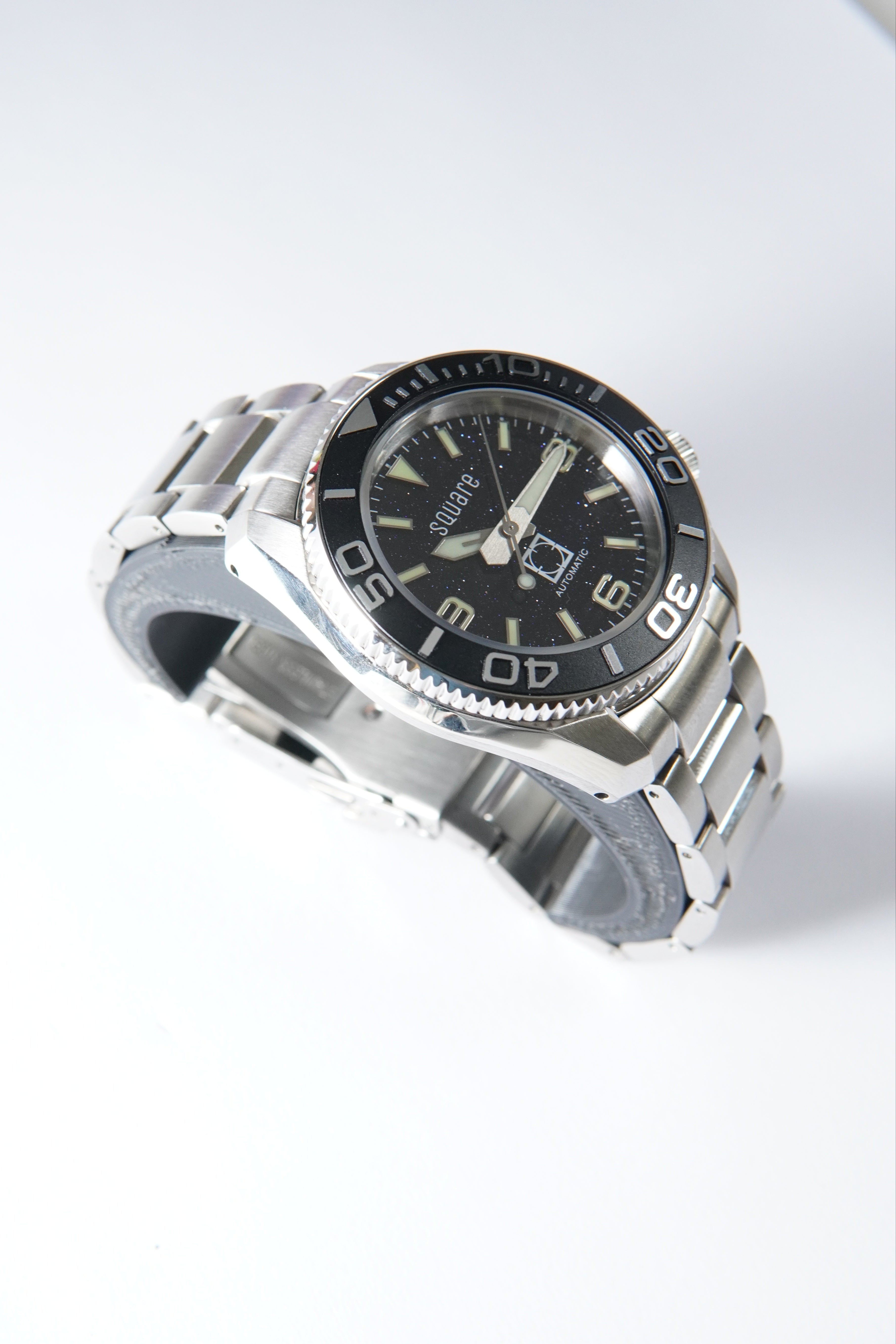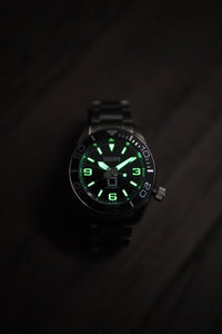 Designed for the depths and beyond, the Midnight Reef combines robust functionality with captivating style. This substantial 42mm timepiece features a mesmerizing natural stone dial that shimmers in the light, evoking the mysteries of the ocean. The striking dial is framed by a unidirectional diving bezel and protected by a scratch-resistant sapphire crystal. Powered by the reliable NH35 automatic movement, the Midnight Reef ensures precision in any environment. It's securely fastened with a durable 22mm stainless steel bracelet equipped with a dual locking clasp, offering comfort and confidence for all your adventures. Meticulously assembled in Canada, the Midnight Reef is a testament to unwavering craftsmanship and an adventurous spirit, and is water-resistant to 100 feet (30 meters).