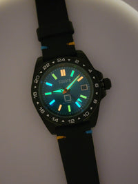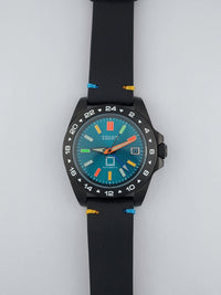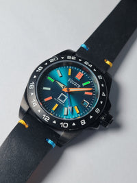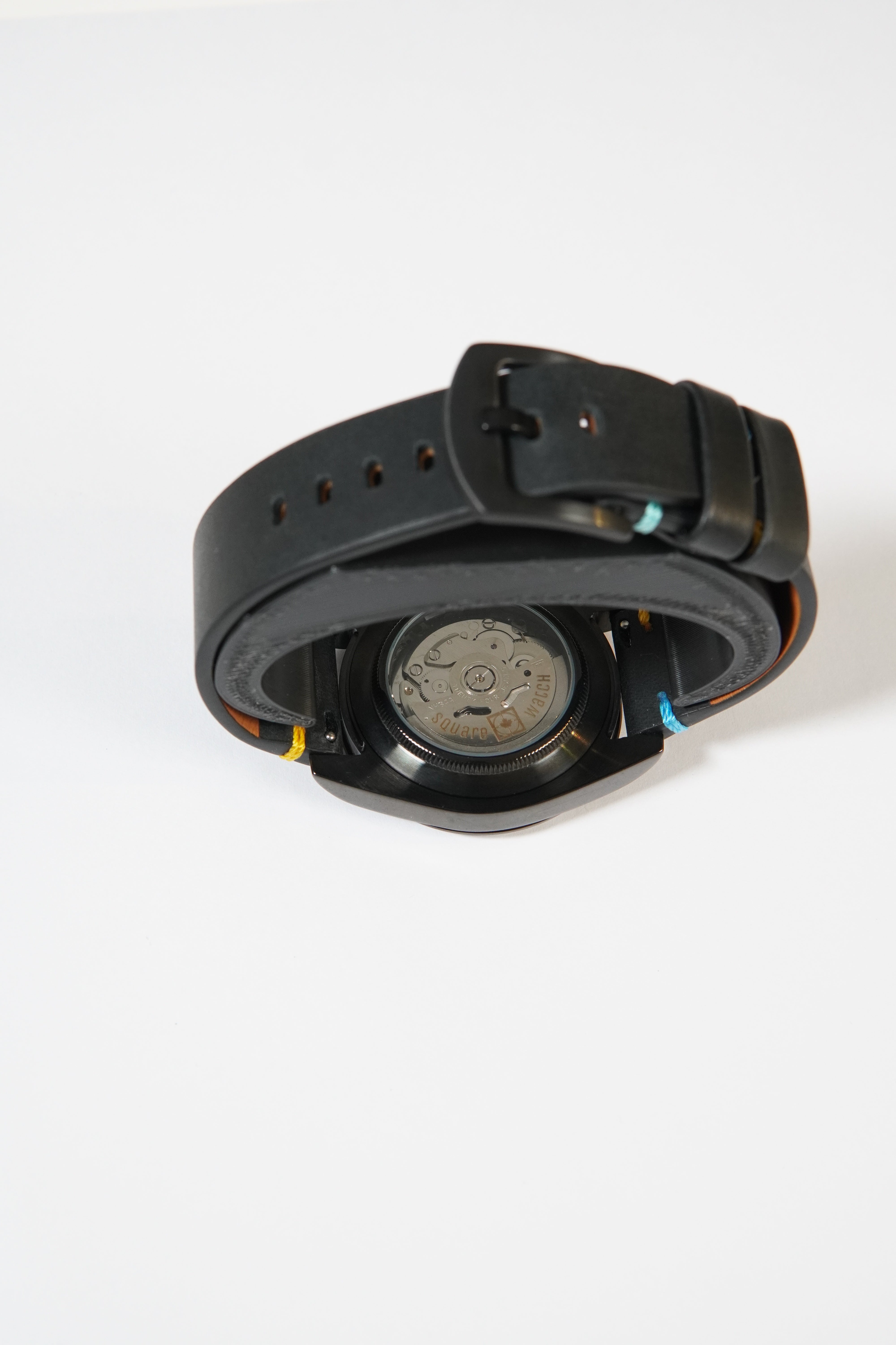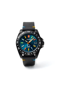 Unpredictable. Unstoppable. The Nomad Wildchild is made for those who live in full color. Featuring a vibrant multi-color dial set against a rugged black case, this 39mm GMT watch refuses to be ignored. Protected by a scratch-resistant sapphire crystal and powered by the proven NH34 automatic movement, the Wildchild is ready for spontaneous journeys and bold adventures. Matched with a handmade Italian leather strap accented by colorful stitching and proudly assembled in Canada, it’s a celebration of individuality and free spirit.
