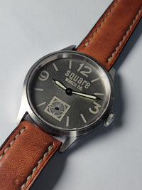 Rugged, mechanical, and proudly minimal — the Rawsteel 44 from Square Watch Co. captures the essence of pure mechanical watchmaking. Featuring a fully brushed 44mm stainless steel case and a raw-finished dial with etched indices, the Rawsteel 44 puts craftsmanship and functionality first. Powered by the reliable ST3621 hand-wound mechanical movement, it offers a direct, tactile connection between wearer and machine, visible through a sapphire exhibition caseback. Completed with a handmade Canadian leather strap crafted from premium Italian leather, the Rawsteel 44 is built for those who appreciate honest materials and traditional mechanics — no frills, no shortcuts.
