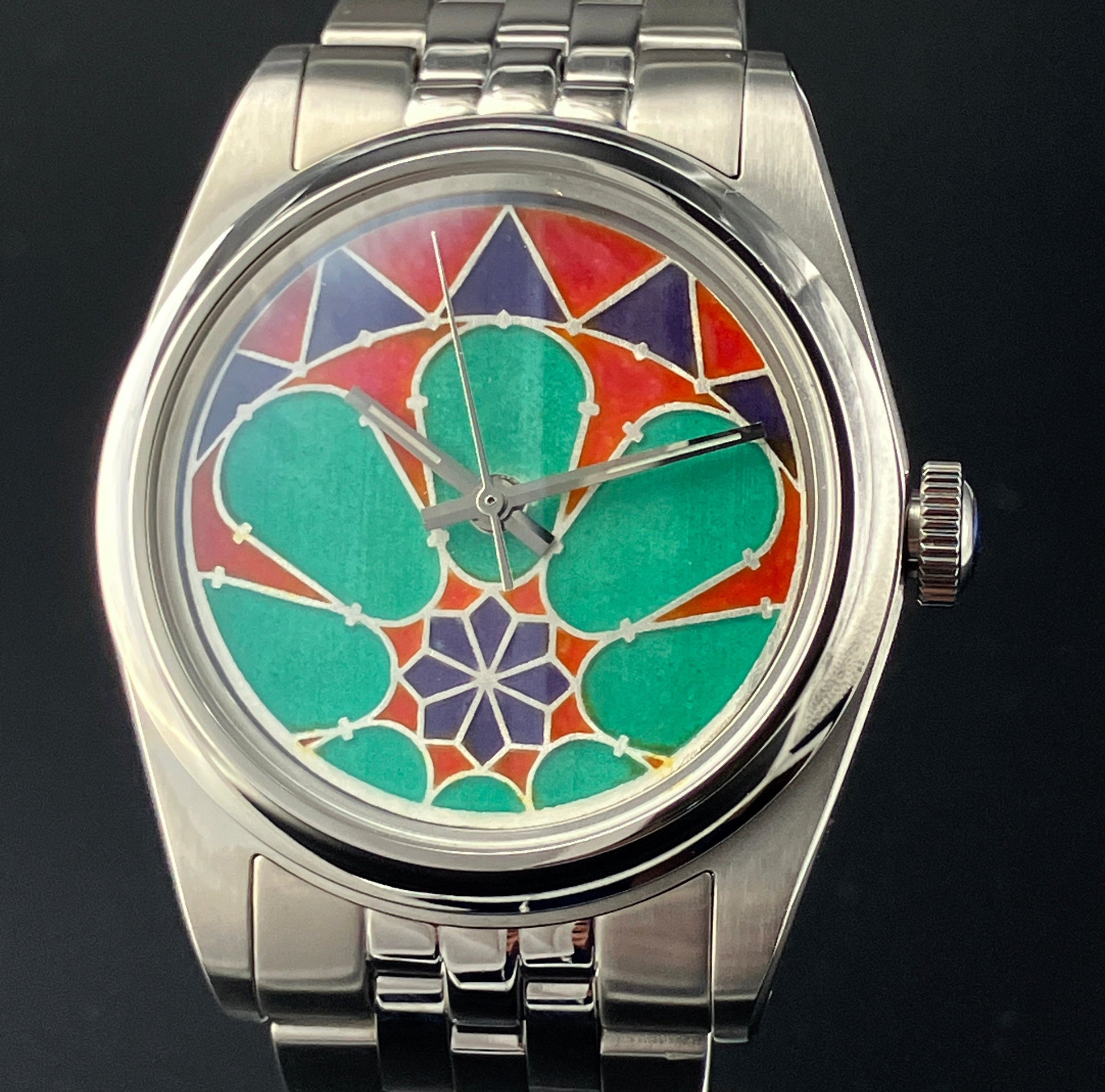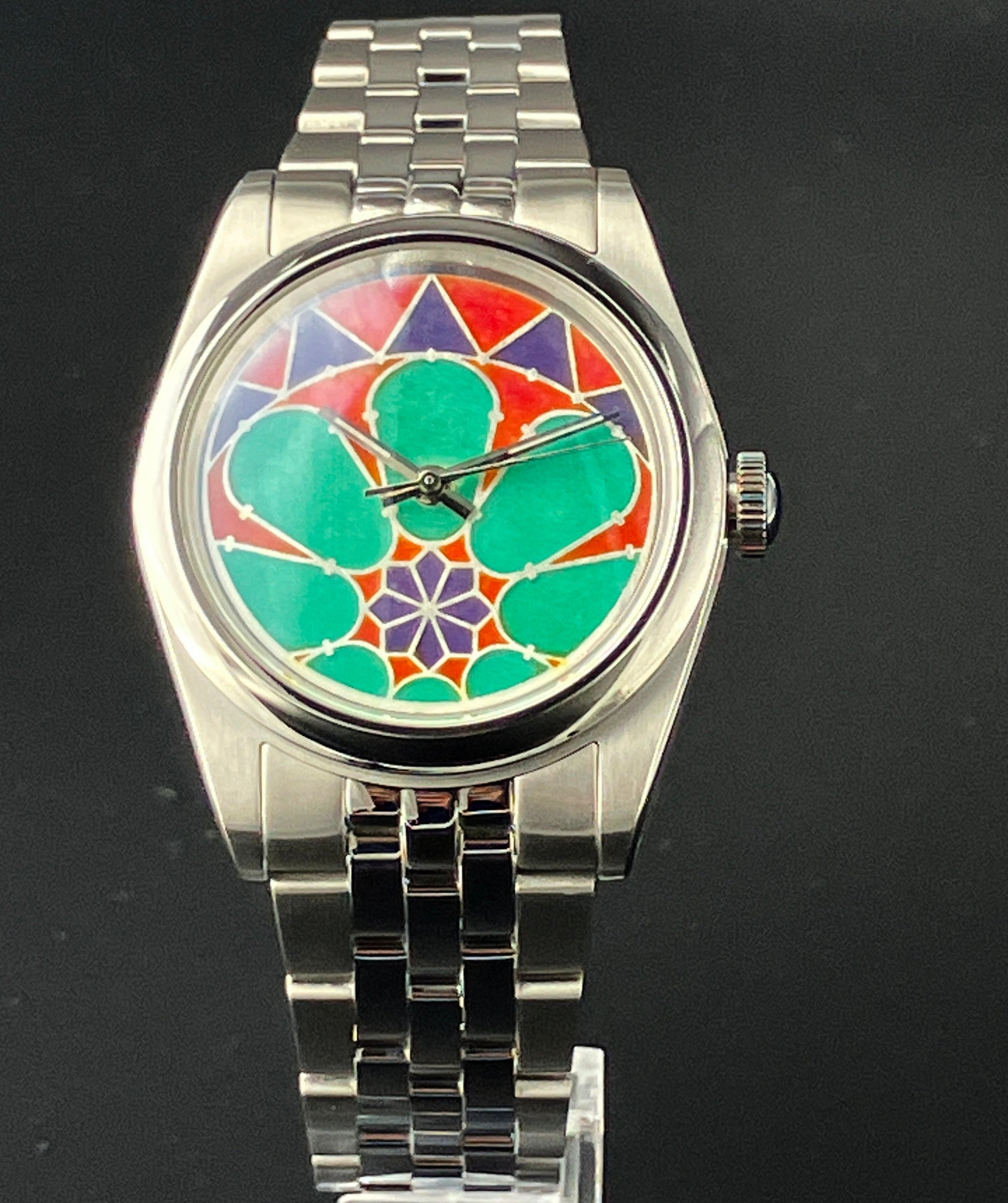 This watch is part of a limited series of Rose Window dials. Each dial features the same beautiful pattern from the Rose Window with a unique set of colors.