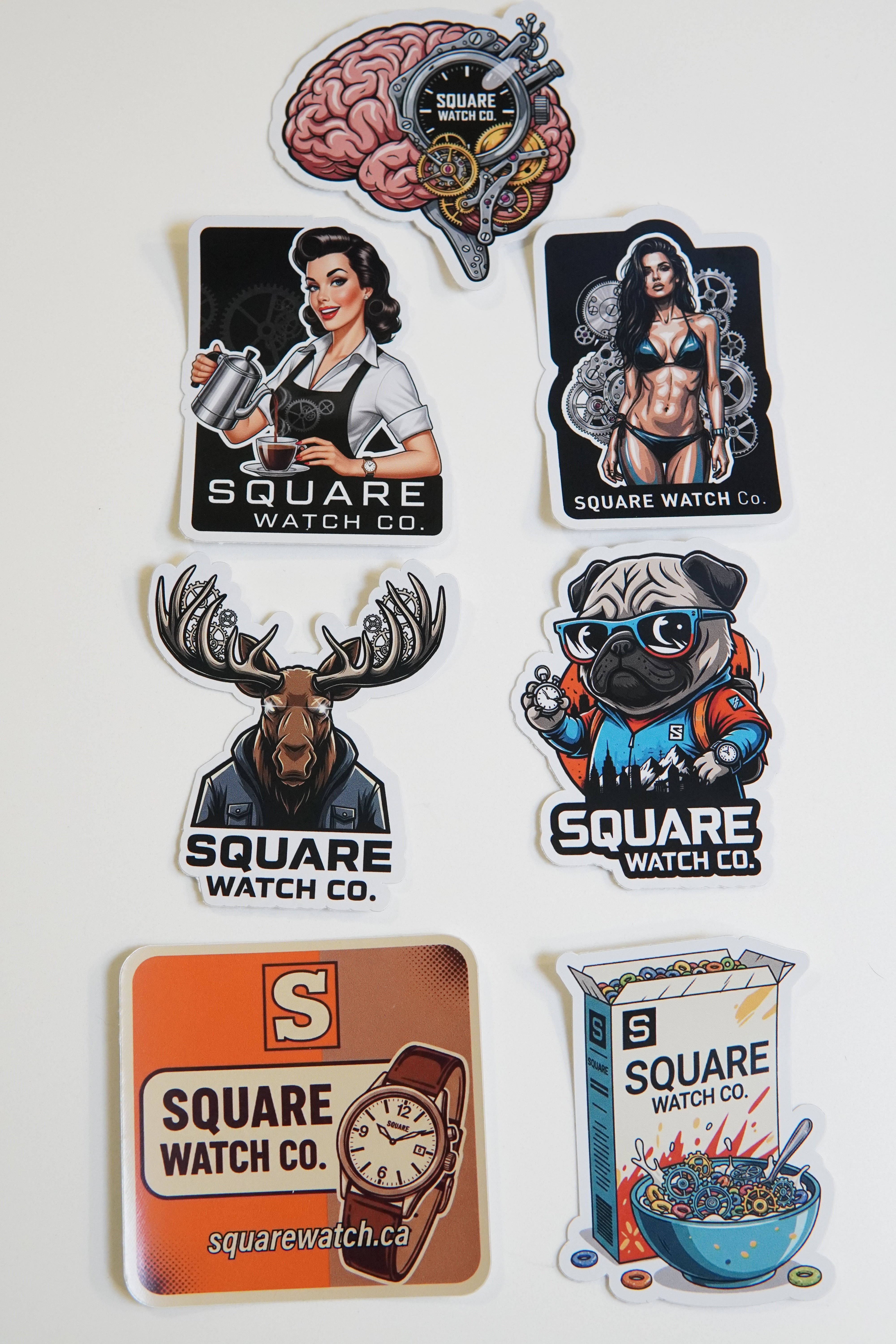 Complete Curated Set: Each pack includes 7 unique sticker designs, featuring a mix of our classic Square Watch Co. logos and exclusive new illustrations.