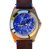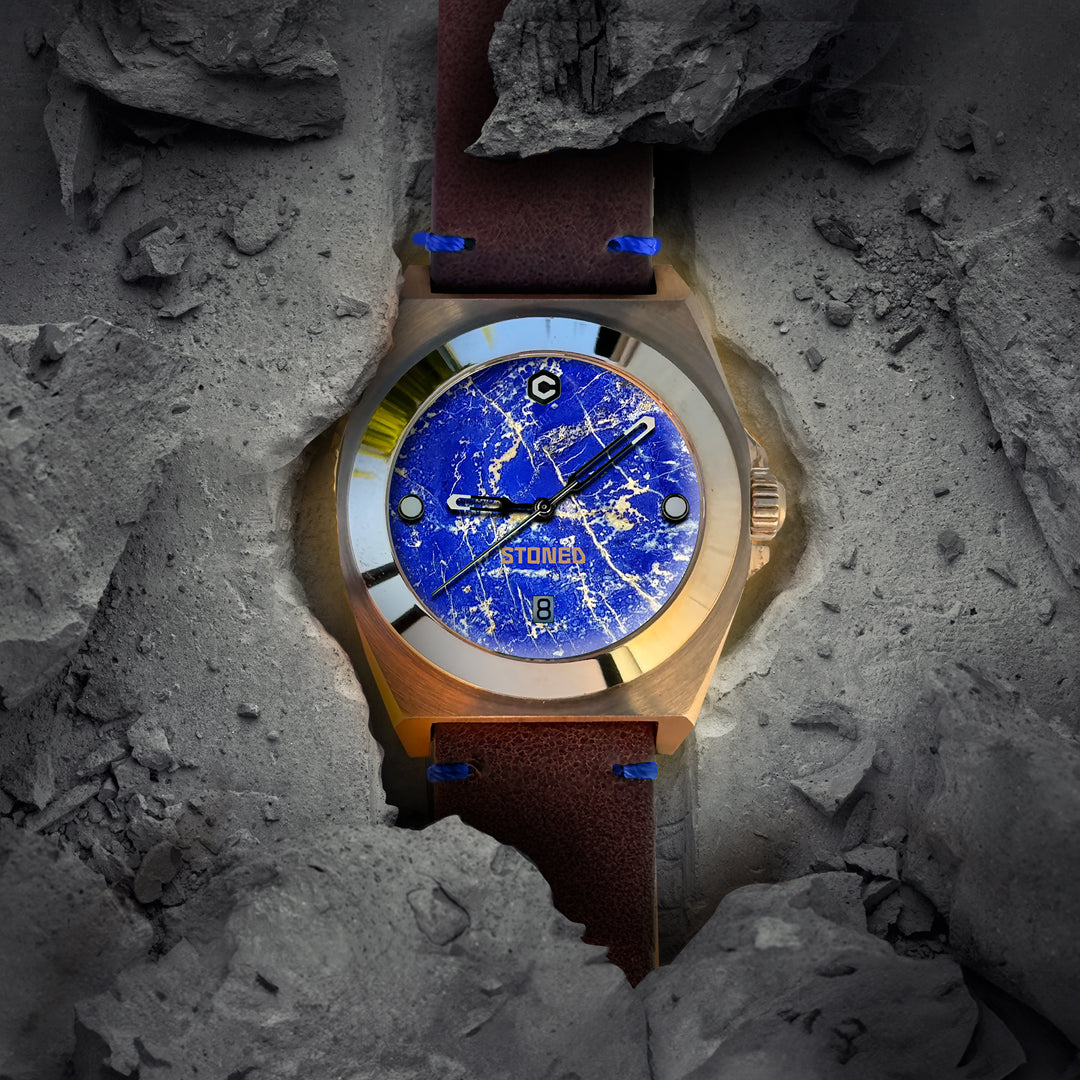 Like a fine wine it's aged and pre patinaed as HIS or HERS . . . Introducing STONED, the new timepiece that evolves with you—a piece that speaks to the passage of time and life’s personal journey. Our bronze case, with gemstone dial, starts your journey as an elegant statement and grows richer with every wear. The bronze develops a unique patina over time, becoming a reflection of your experiences and the life you live. This watch is more than a refined timepiece; it’s a companion on your journey, deepening your connection to the moments you cherish and the time you carry with you...