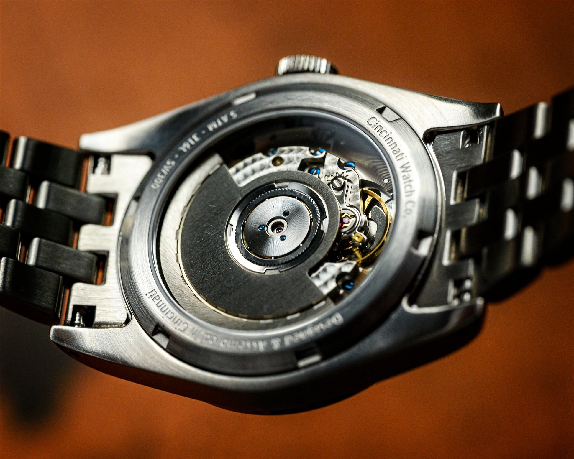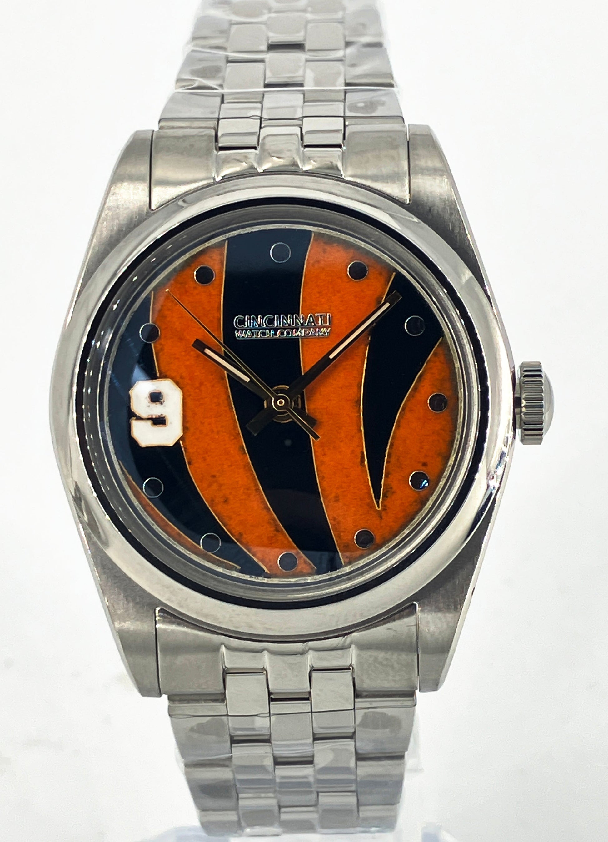 The watch case is made in Stainless Steel by the Cincinnati Watch Company.