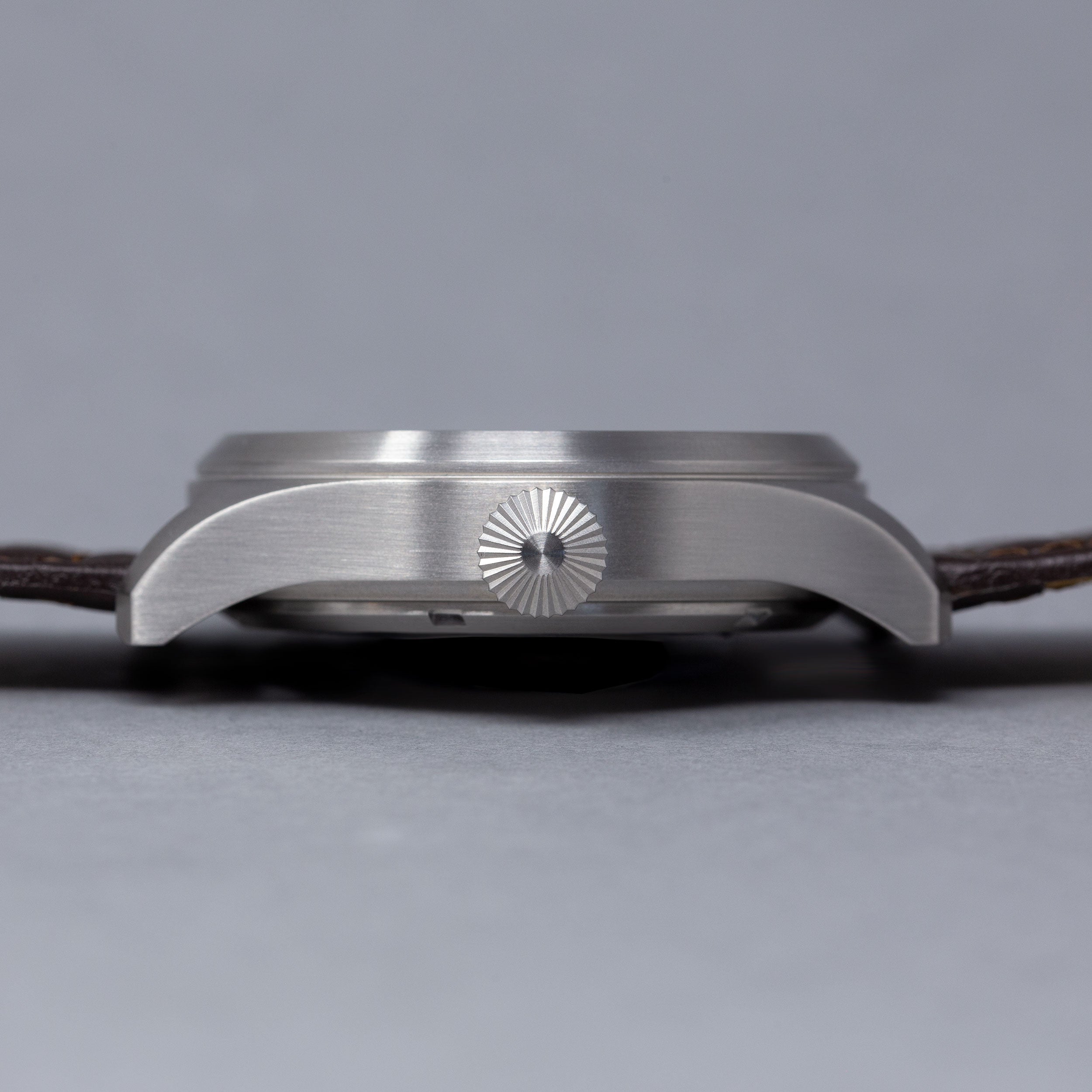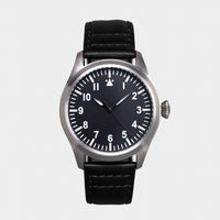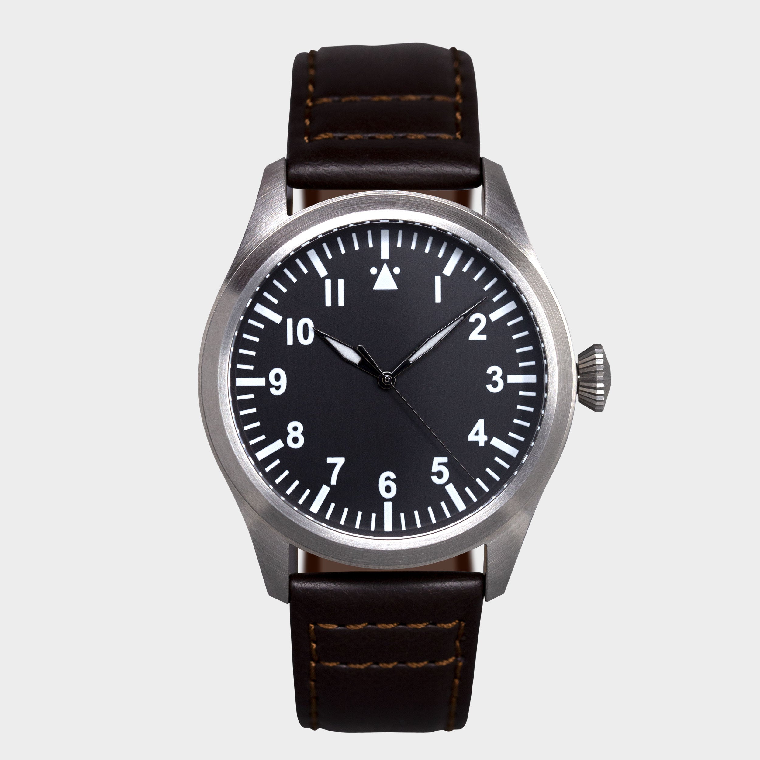 Inspired by the original 1940s air force issue tool watch, meet the Turbulence, our modern-day reproduction of the large 46mm Aviator's Watch. Fully automatic, built in Zurich, finished in the UK and accompanied by a 100% vegan leather strap made in Italy.