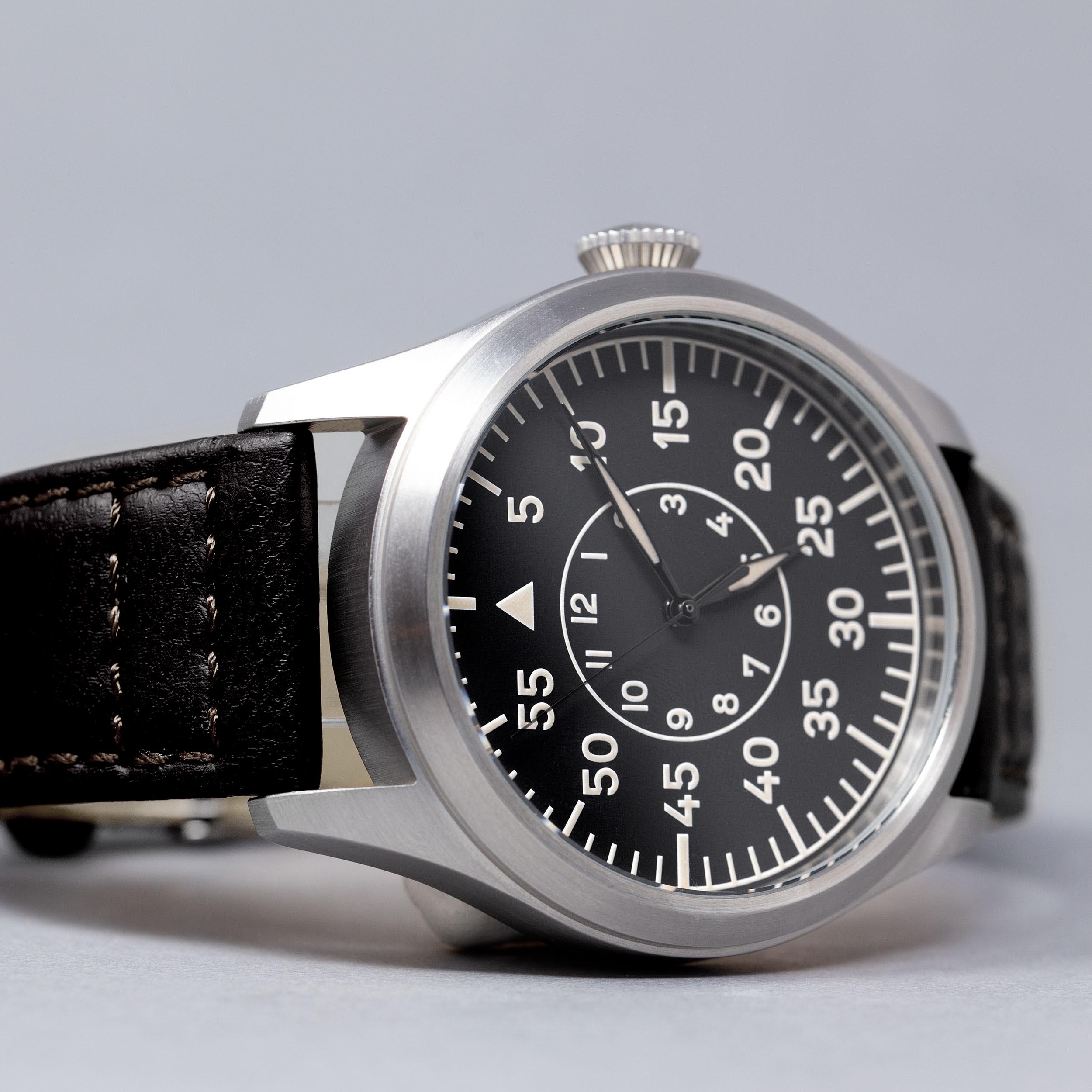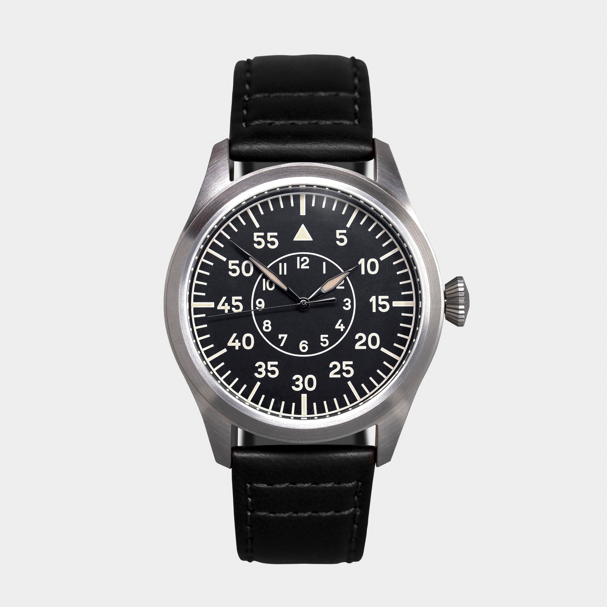 Inspired by the original 1940s air force issue tool watch, meet the Turbulence, our modern-day reproduction of the large 46mm Aviator's Watch. Fully automatic, built in Zurich, finished in the UK and accompanied by a 100% vegan leather strap made in Italy.