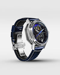 With an impressive six-layered complication integrated with the mesmerizing skeleton movement. The Skeleton watch is designed to enhance the inner mechanical beauty, highlighting the bridges, gears, and wheels and to give even more depth to it. Your eyes will be drawn to the exposed heart of the movement, the proud balance wheel in constant motion, explore the precise details of each layer.