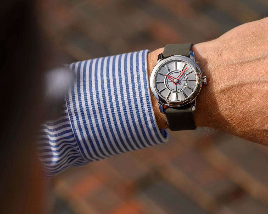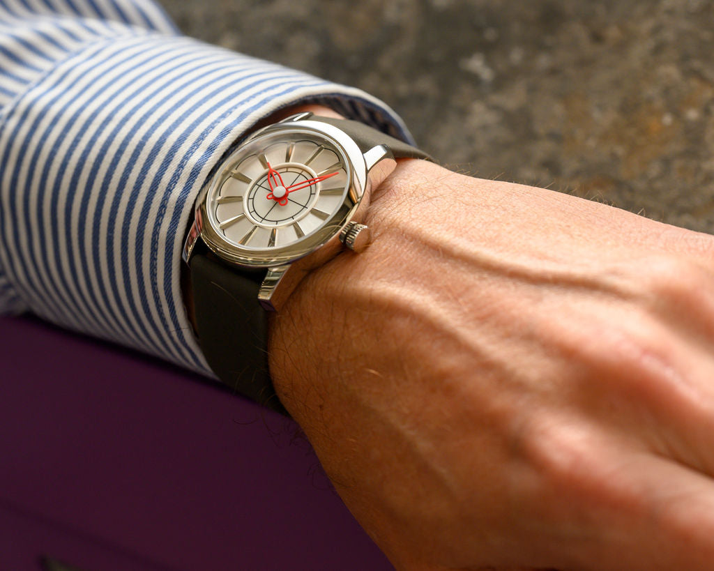 Created in partnership with the Cincinnati Museum Center, this watch is inspired by the iconic clock on the outside of Cincinnati's Union Terminal. This is the only watch we make that doesn't have our brand name on the dial. This iconic look says Cincinnati without having to put it on the dial. A portion of every sale directly benefits the Cincinnati Museum Center at Union Terminal.